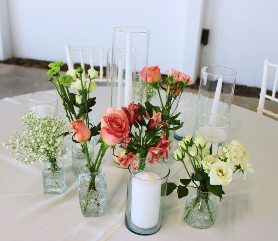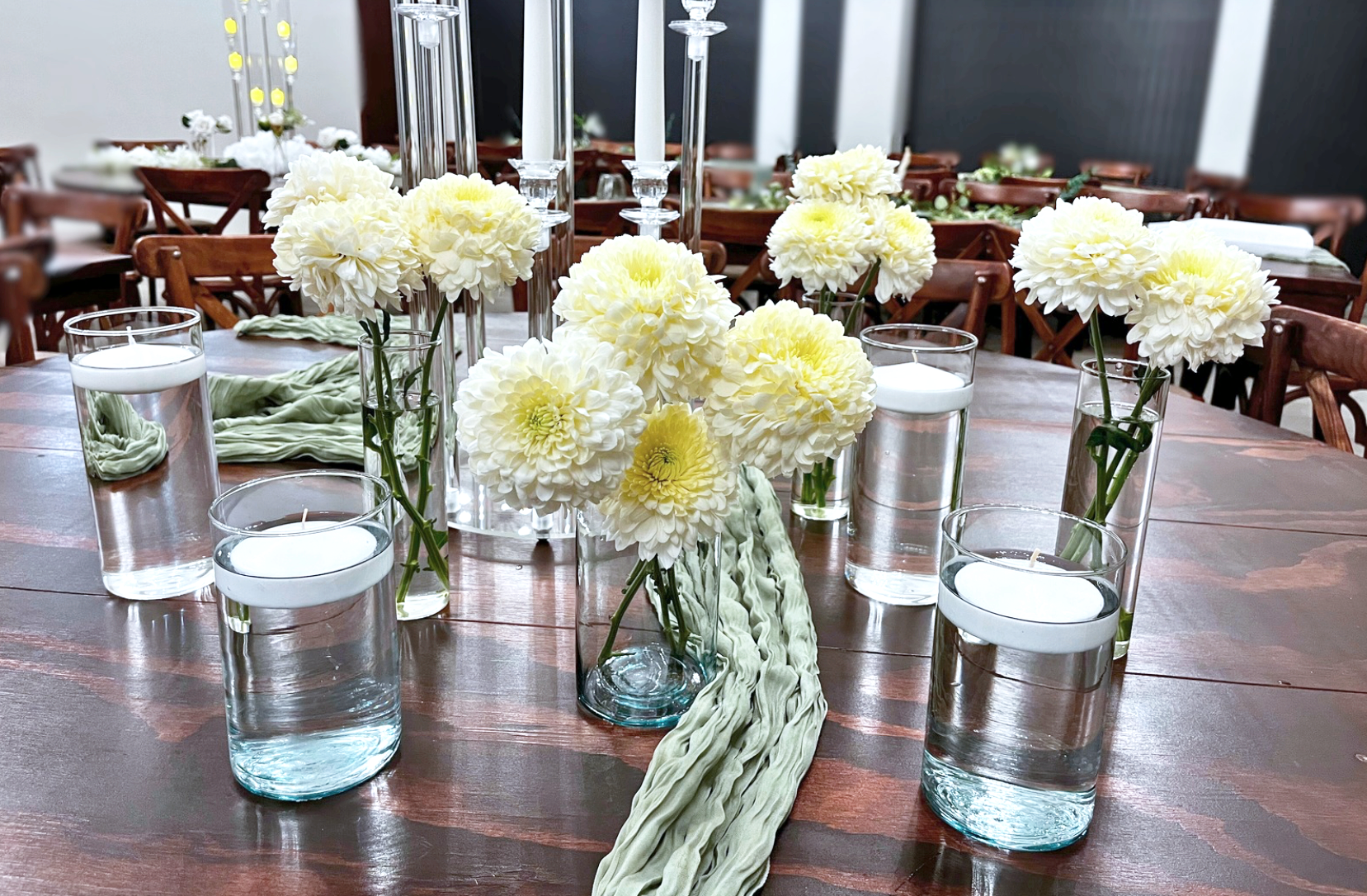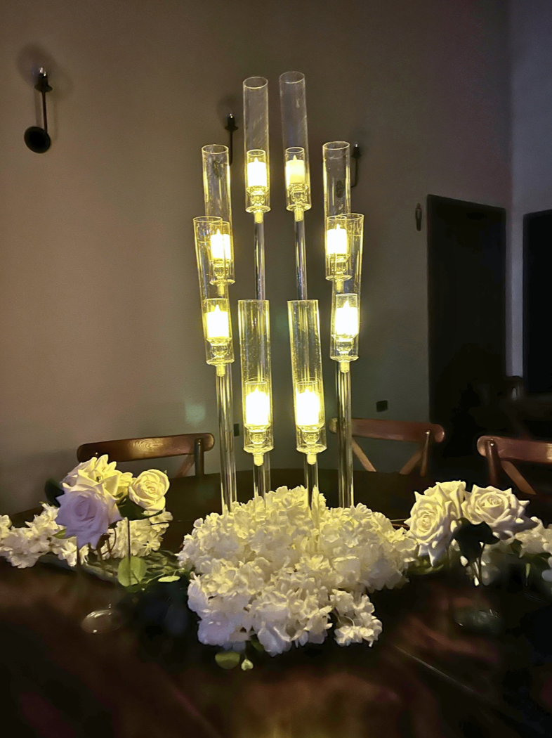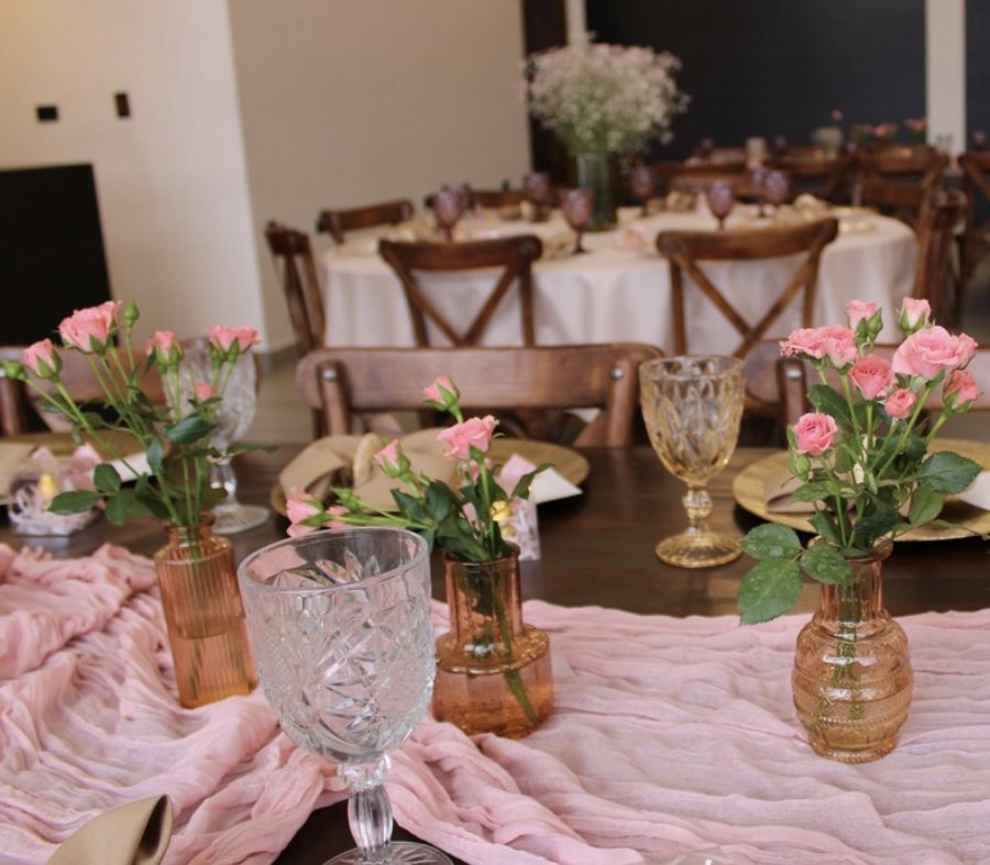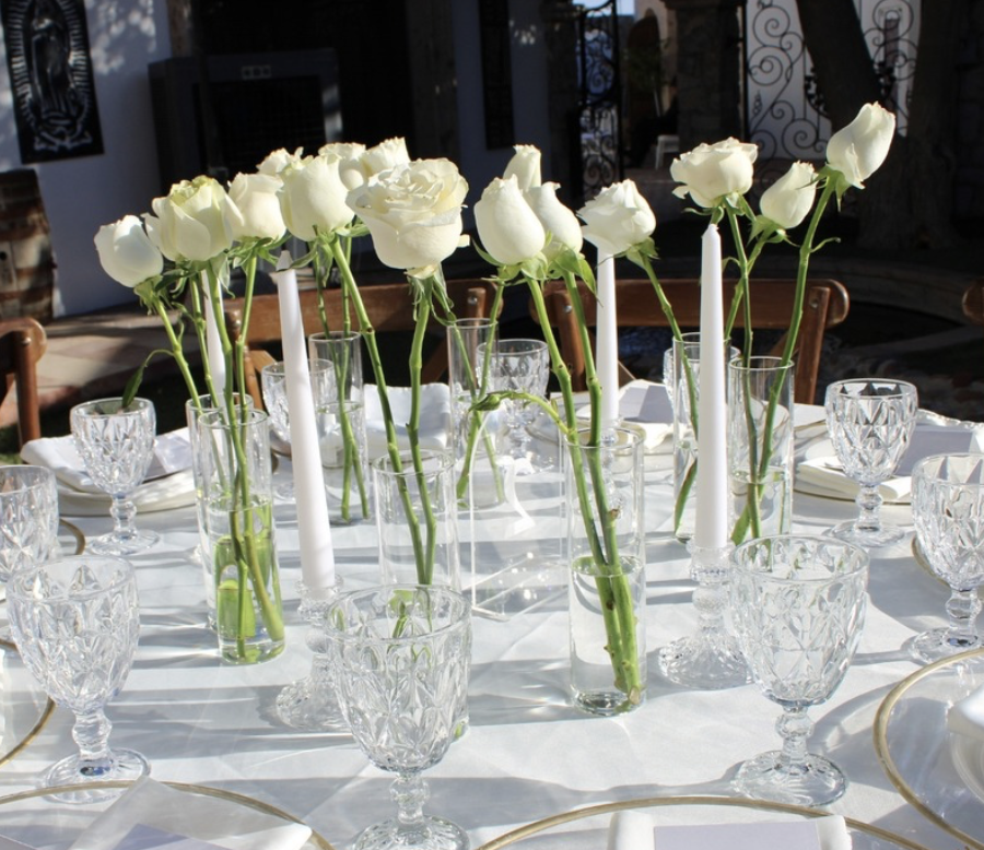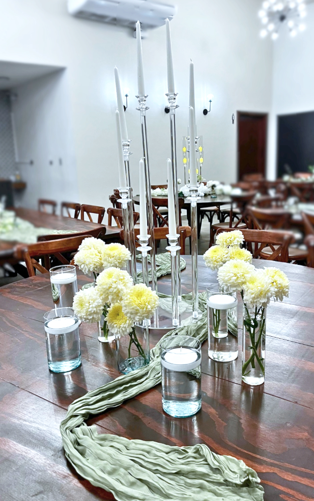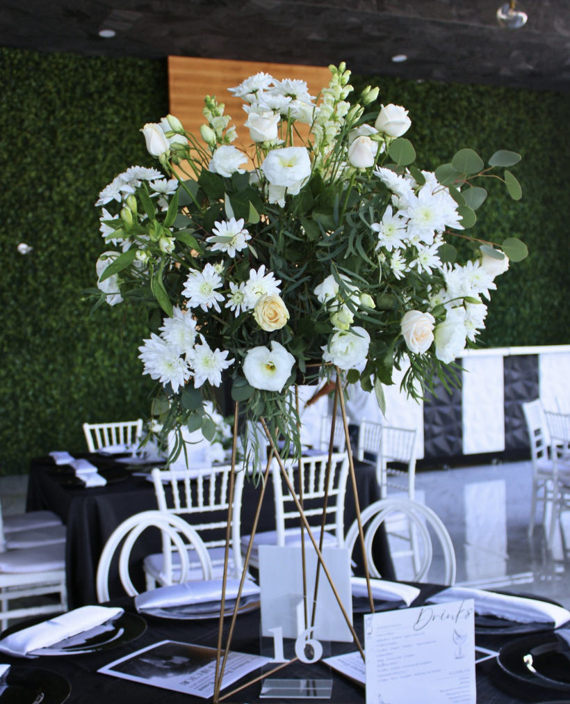 Arreglos florales y estructuras decorativas para bodas, quinceañeras y eventos corporativos.